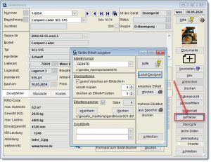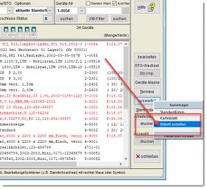 Aufkleber für Geräte werden aufgerufen mit der Programmfunktion Menü GERÄTE – GERÄTE VERWALTEN – Button AUFKLEBER