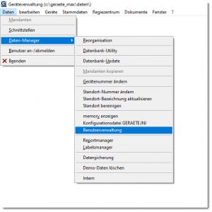 Die Benutzer- und Kennwortverwaltung befindet sich im Menü DATEN – DATEN-MANAGER: