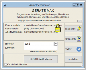 Das Programm meldet sich zuerst mit seiner Startmaske (hier die Variante für die Demoversion):
