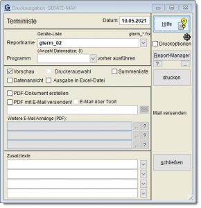Die Druckausgaben in Geräte-Max werden mit dieser Maske gesteuert:
