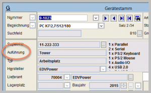 Nach erneutem Aufruf der Maske wird anstelle von „Modell“ der Text „Ausführung“ angezeigt.