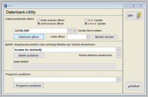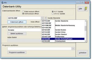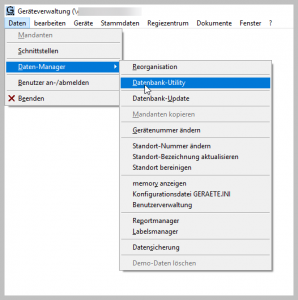 Funktion Datenbank-Utility über das Menüsystem starten.