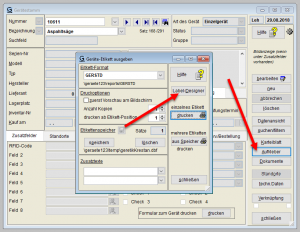 oder direkt vor dem Ausdruck eines Etiketts über den entsprechenden Button