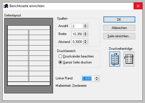 Mit dieser Funktionen können Formate für die Erstellung von Selbstklebetiketten angelegt werden. Sie entspricht in etwa dem Erstellen von Report-Layouts.