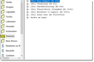 Mit der Auswahl Standorte werden zuerst rechts alle belegten Standorte angezeigt.