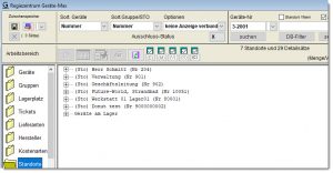Mit der Auswahl STANDORTE – GERÄTE AM LAGER kann immer der aktuelle Gerätebestand am Lager angezeigt werden.