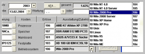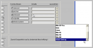 Für die Combo-Felder, hier Prozessor, Grafikkarte und Betriebssystemk kann jetzt jeweils eine eigene Tabelle angelegt werden (unter Tabellenverwaltung, Auswahl Zusatz-Combo-1 – 5).