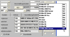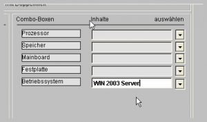 Es öffnet sich jetzt das Eingabefeld für die Auswahlelemente, „WIN 2003 Server“ kann eingegeben werden.
