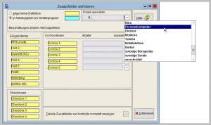 Die hier vorgenommenen Eingaben führen automatisch zu Eintragungen in den Tabellen ZUSATZFELDER und ZUSATZ – COMBO 1 bis COMBO 5,