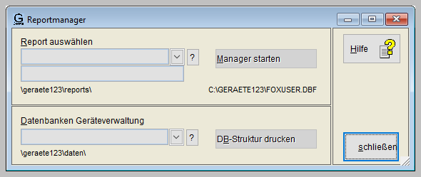 Der Report-Manager kann unabhängig von einem speziellen Report auch allgemein über Menü Daten – Daten-Manager – Reportmanager gestartet werden