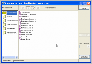 Die (zusätzlichen) Stammdaten zu Geräte-Max können über diese Übersicht oder alternativ über das Menüsystem – Auswahl Stammdaten – aufgerufen werden.