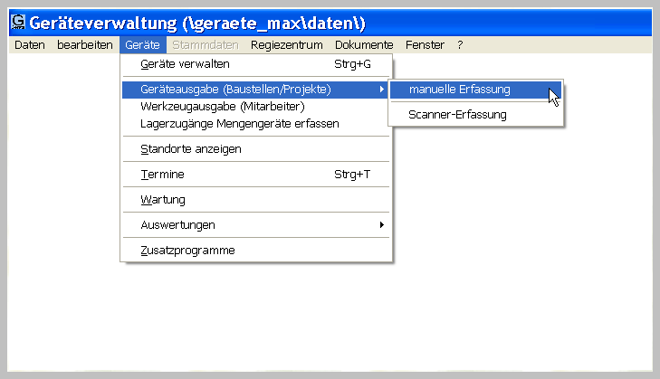 Für Mengen- und Verbrauchsgeräte ist diese Funktion weniger geeignet (es wird immer nur 1 Stück ausgegeben, Rückgaben sind hier nicht möglich).