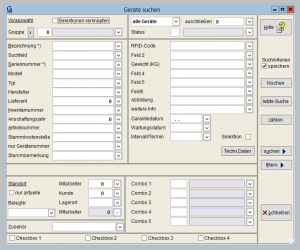 Wie bei der Gerätemaske, kann die Beschriftung durch Doppelklick geändert werden, damit sowohl bei den Stammdaten wie auch bei der Suchfunktion mit den gleichen Beschriftungen gearbeitet werden kann.