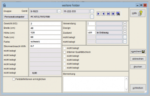 Auf der Seite TECHNISCHE DATEN können weitere Datenfelder mit beliebigen Daten gefüllt werden.
