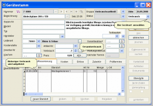 Die einzelnen Buchungen erfolgt mit den Standardfunktionen von Geräte-Max.