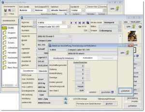 Für den Geräteeinsatz auf Baustellen usw. können Abrechnungen erstellt werden (Menü GERÄTE – AUSWERTUNGEN – STANDARD-AUSWERTUNGEN).