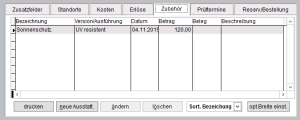 | Ausstattung und Zubehör zu einem Geräte werden mit den folgenden Angaben angezeigt: |
